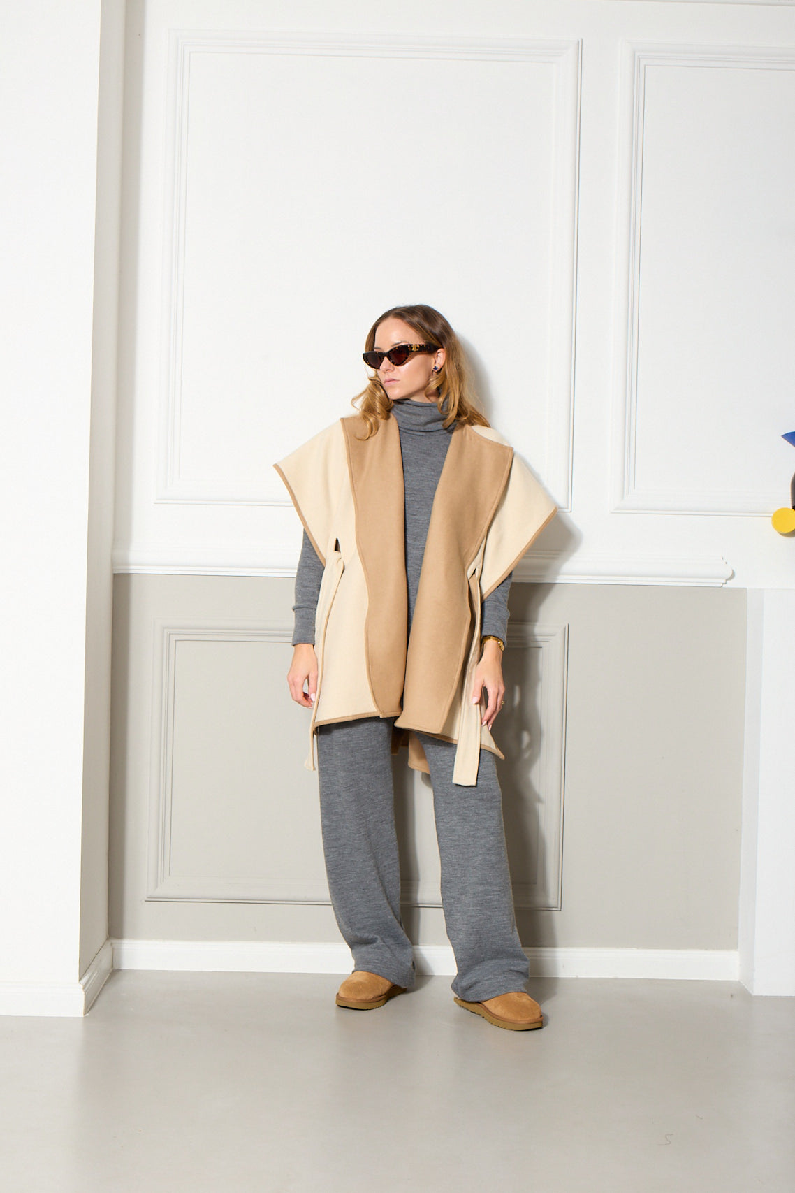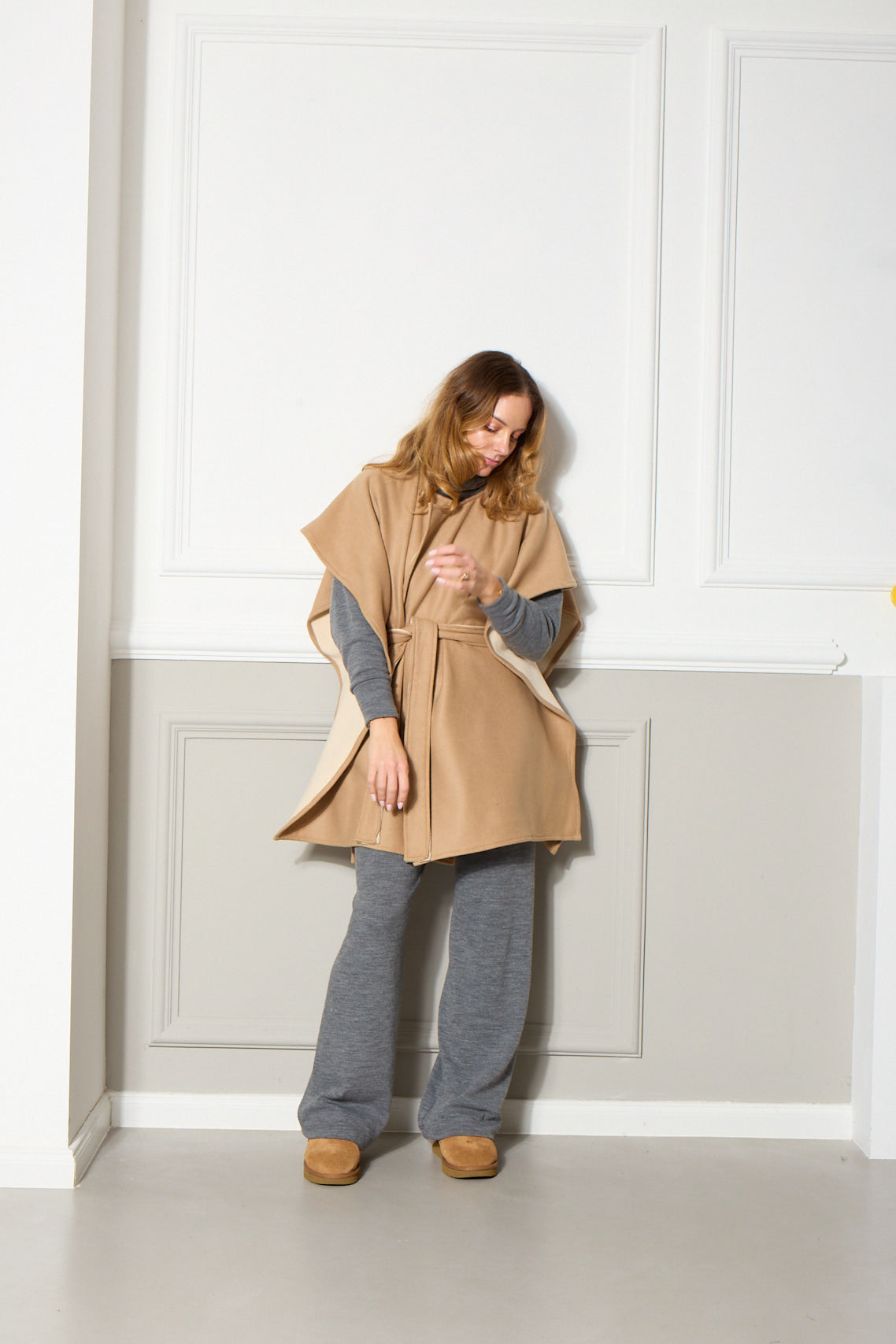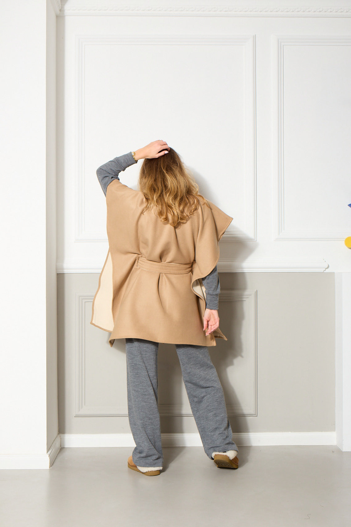 AZRA PONHO IN LIGHT TWO COLOURED BEIGE BROWN