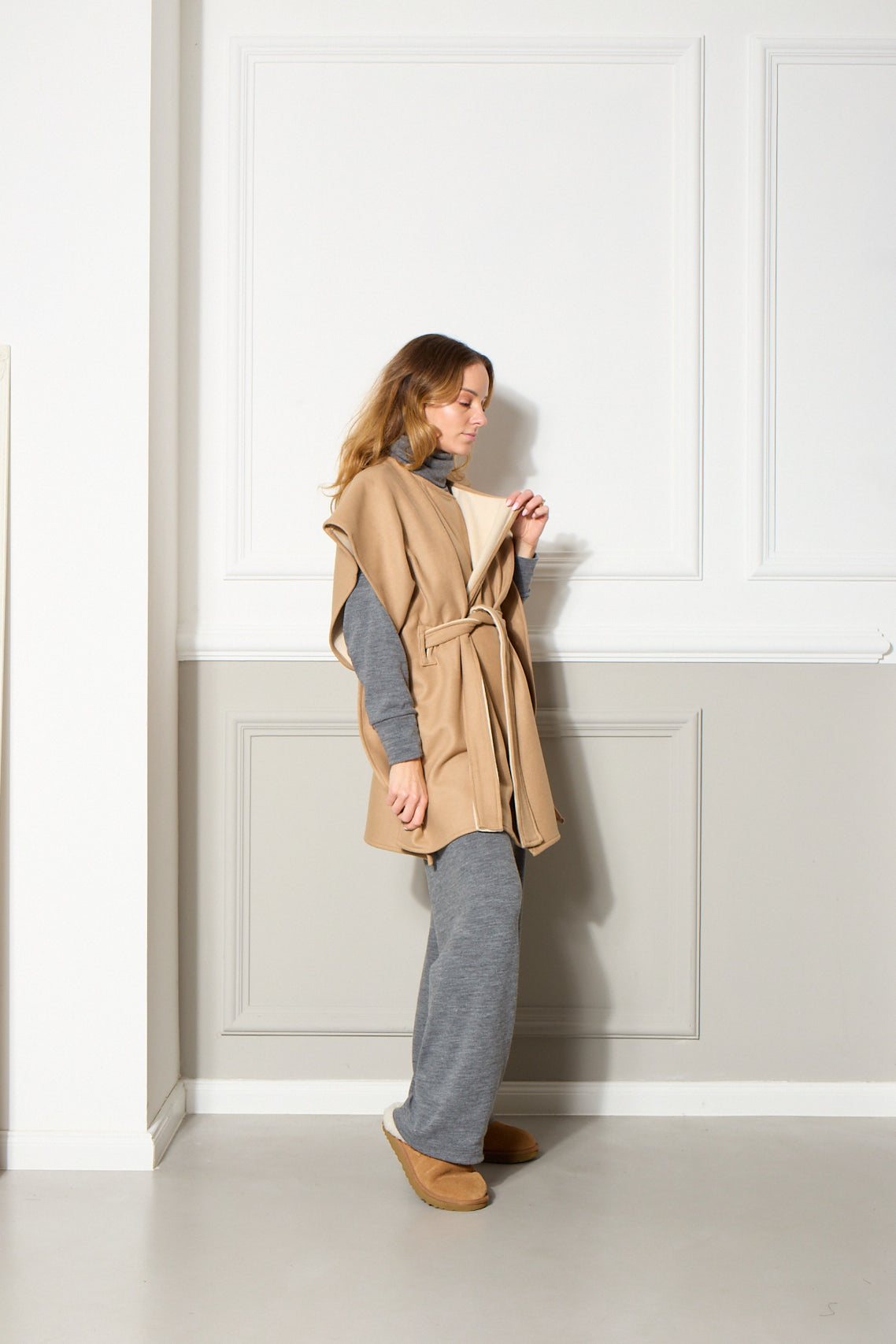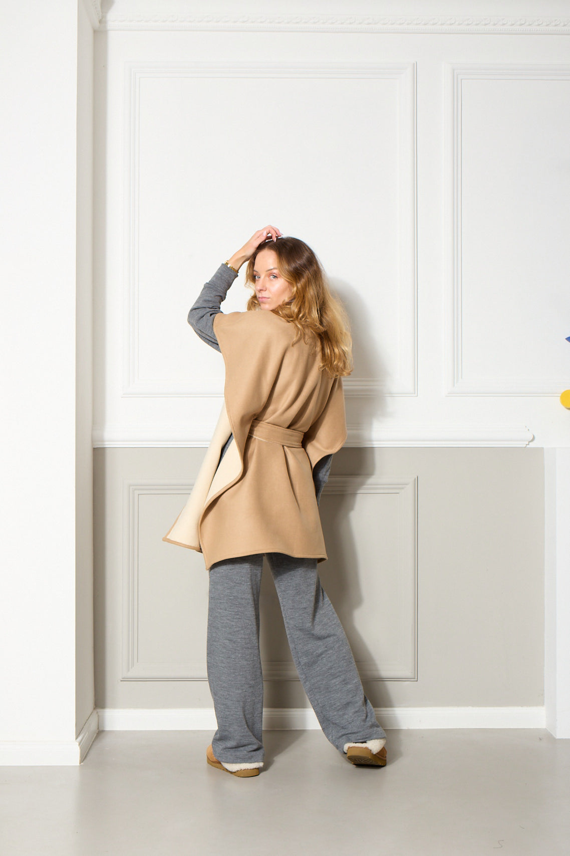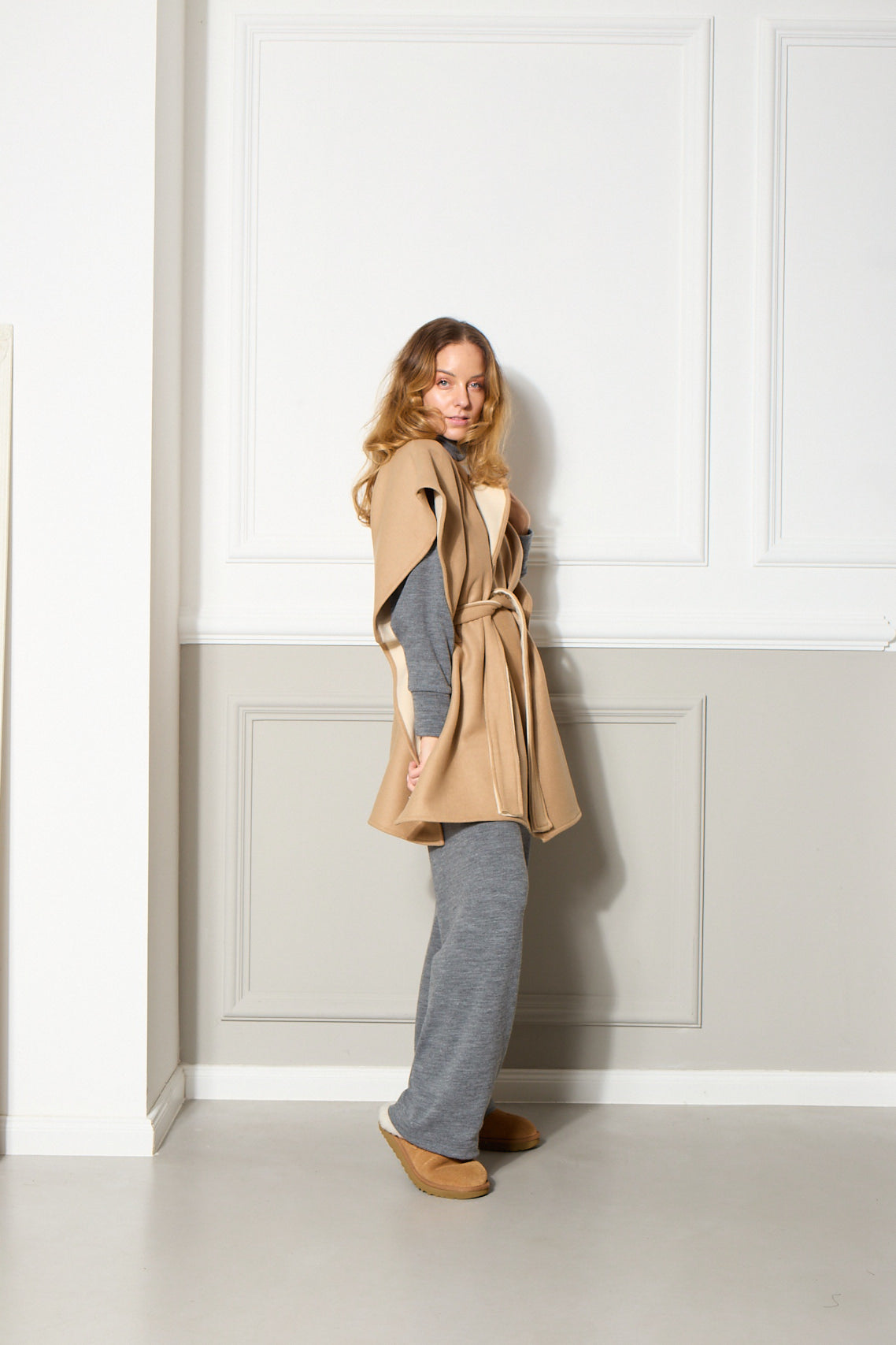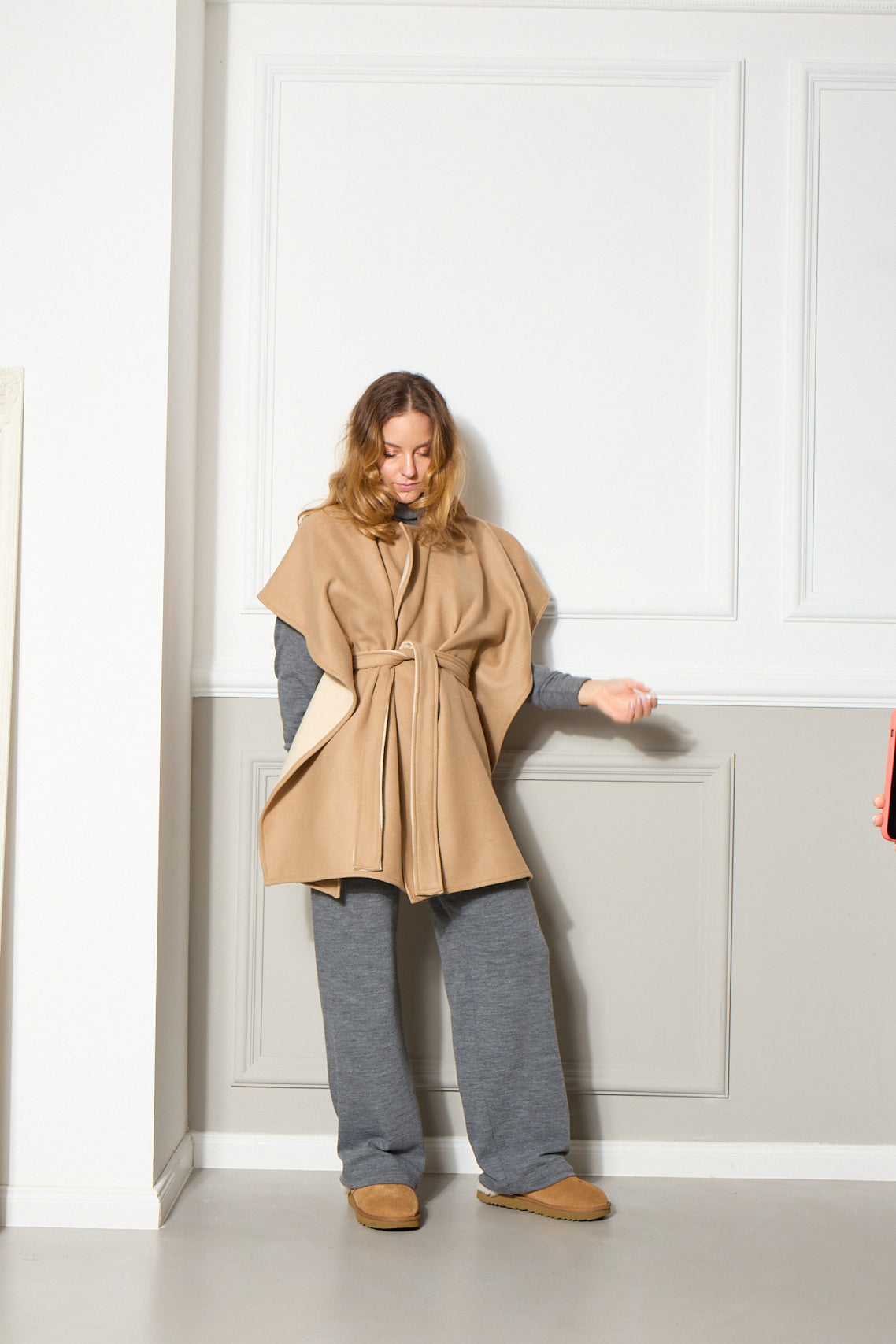 AZRA PONHO IN LIGHT TWO COLOURED BEIGE BROWN