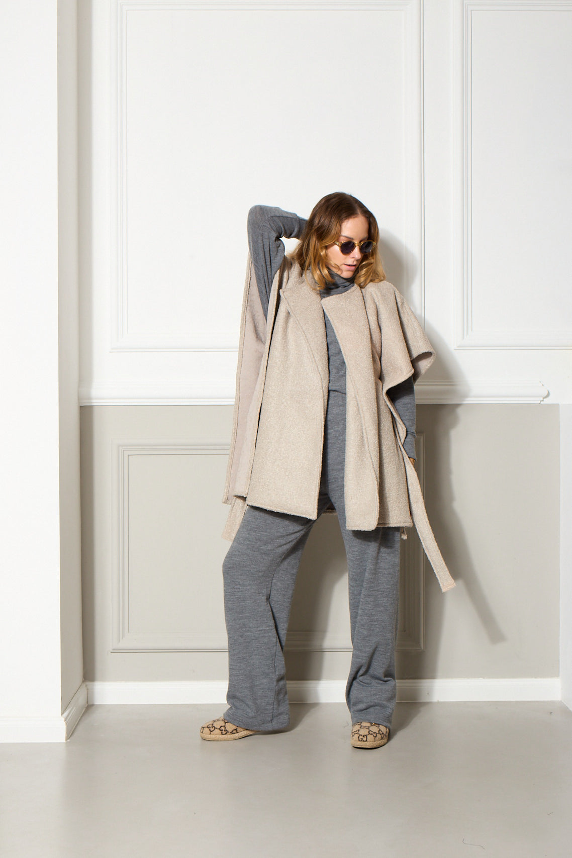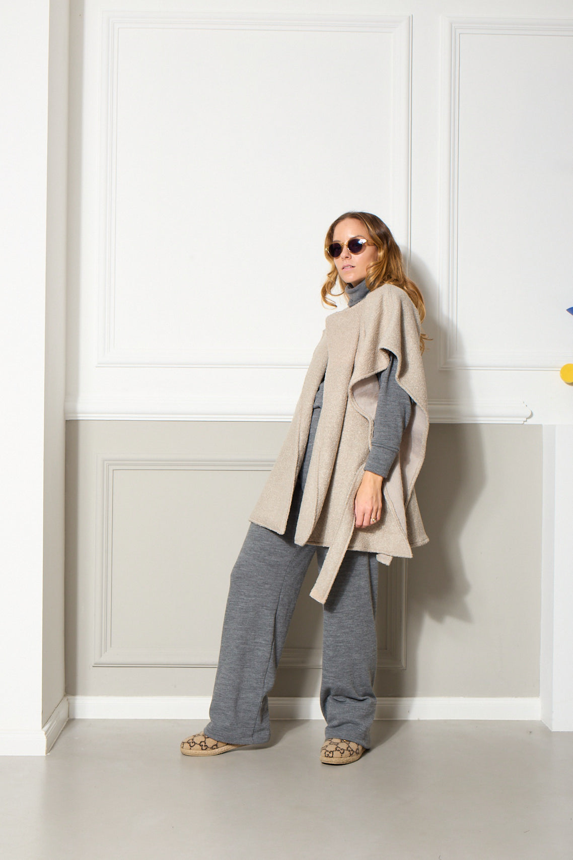 Ha valami igazán különlegesre vágysz, ami egyszerre divatos és meleg, az AZRA poncsó a tökéletes választás! Egyedi stílusa és praktikus kialakítása miatt garantáltan az egyik kedvenc daraboddá válik, amely minden alkalommal feldobja a megjelenésedet.- Nem mellesleg 100% fenntartható gyapjúból készült.