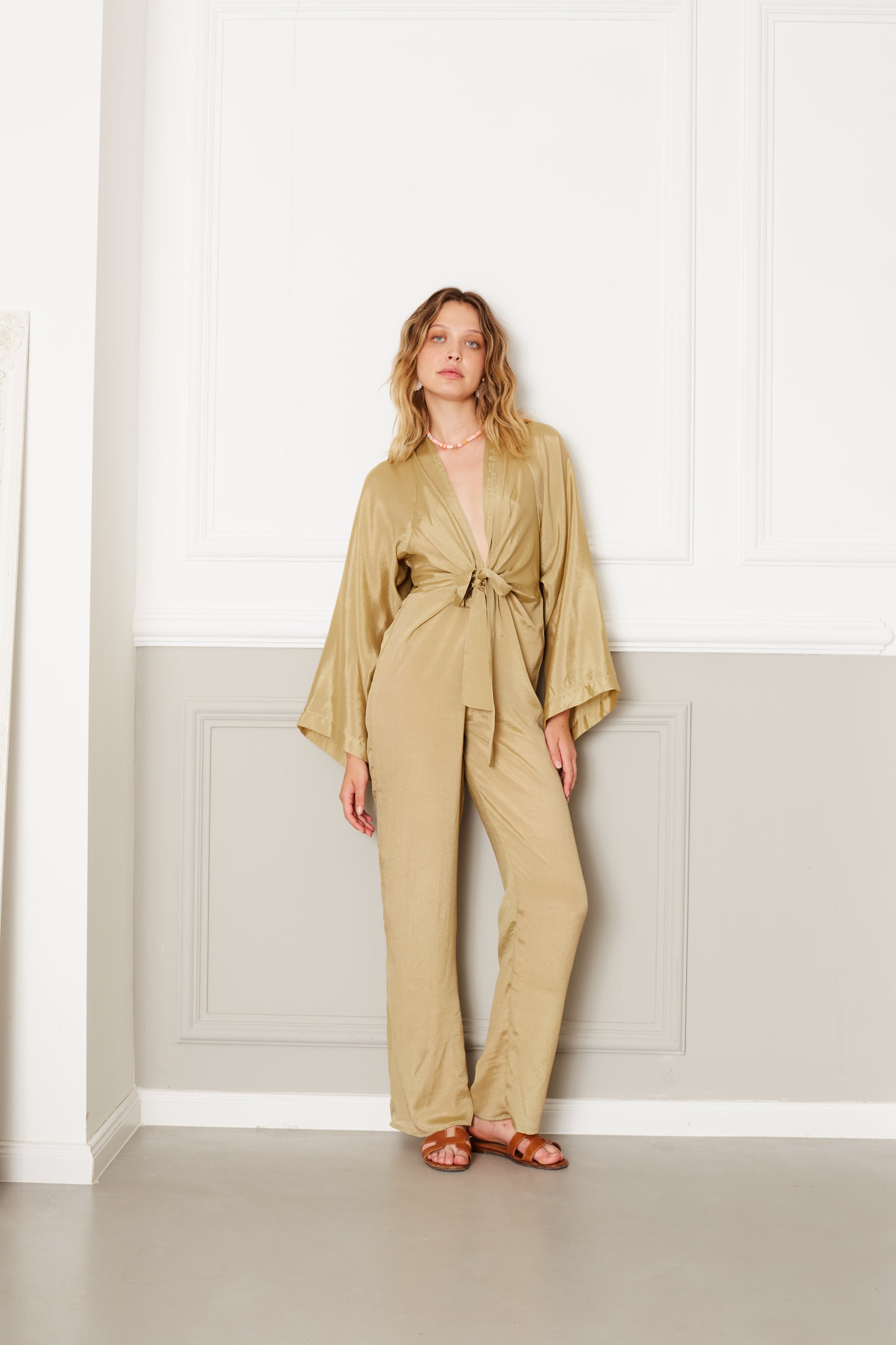 A Latifa overál tökéletes választás, ha szereted a lágy, kényelmes ruhákat, amelyek lehetővé teszik, hogy a nyári szellő kellemesen átjárjon. Ez az egy méretben elérhető darab garantáltan hű társad lesz a strandon és egy vacsorán is. A legjobb hír? Nem nyom, így egész nap kényelmesen viselheted. 100% poliészterből készült, fenntartható deadstock anyag, így nemcsak divatos, de környezetbarát választás is. A Latifa overál egy igazi must-have a nyári napokra!