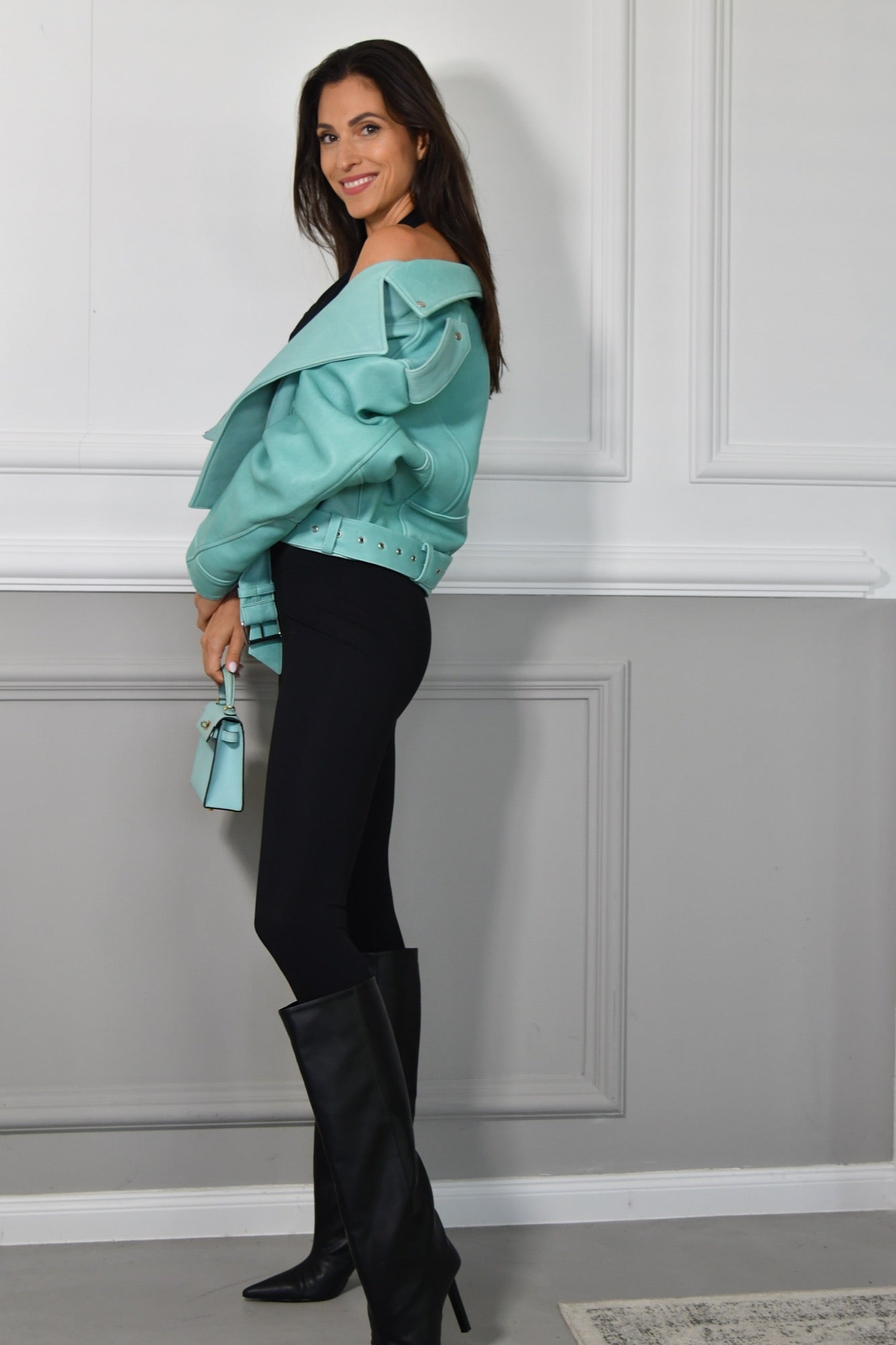 Az élénk színek azonnal feldobnak minden szettet, míg a prémium minőségű bőr tartósságot és kényelmet biztosít a viselőnek. Az ezüstszínű cipzárak, szegecsek és az övcsatok mind elegánsan megtervezett részletek, amelyek egyszerre praktikusak is. Elegáns, testhezálló szabással terveztük, mely bárki számára tökéletes, mivel sokoldalú, egyméretű kivitelben készül.