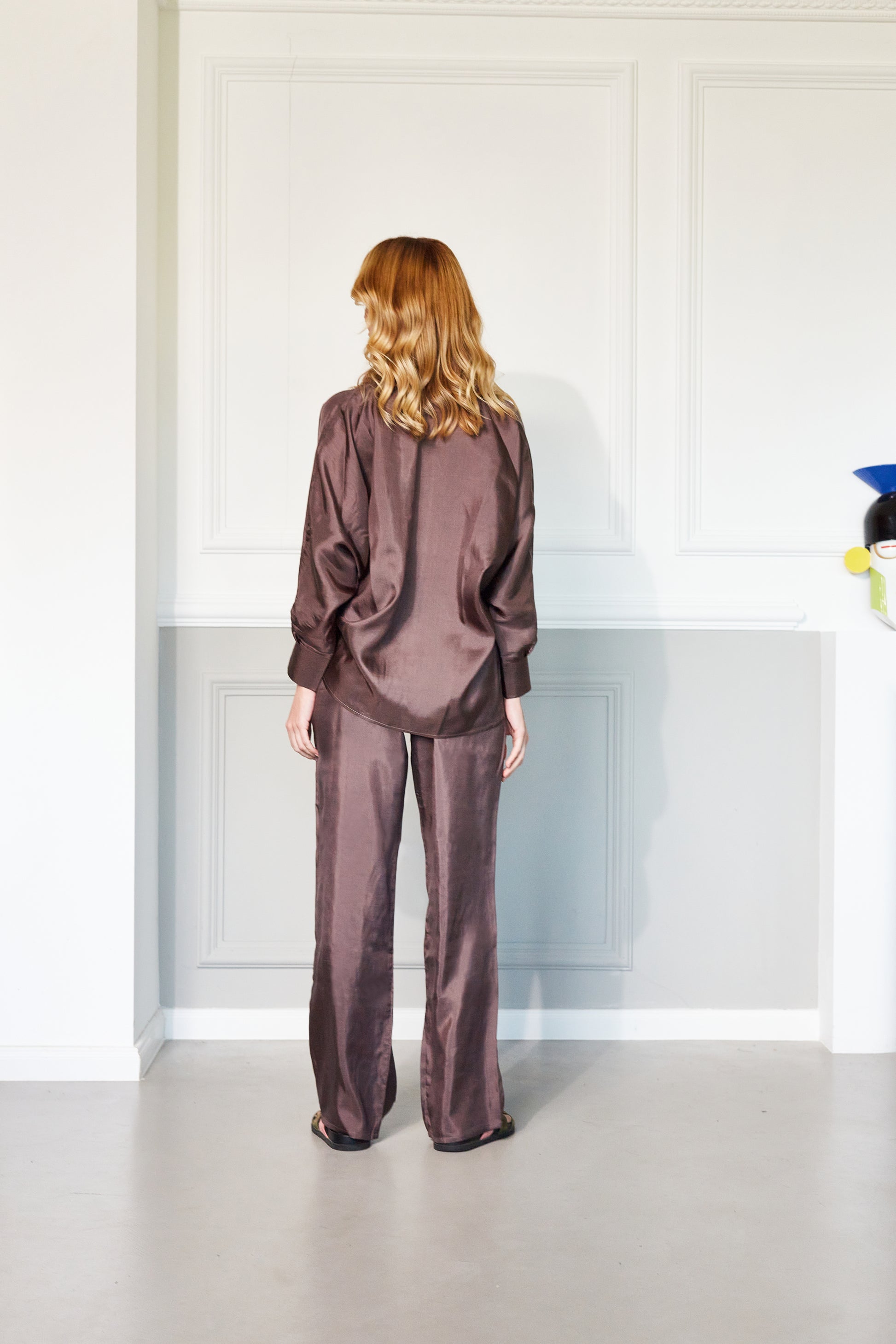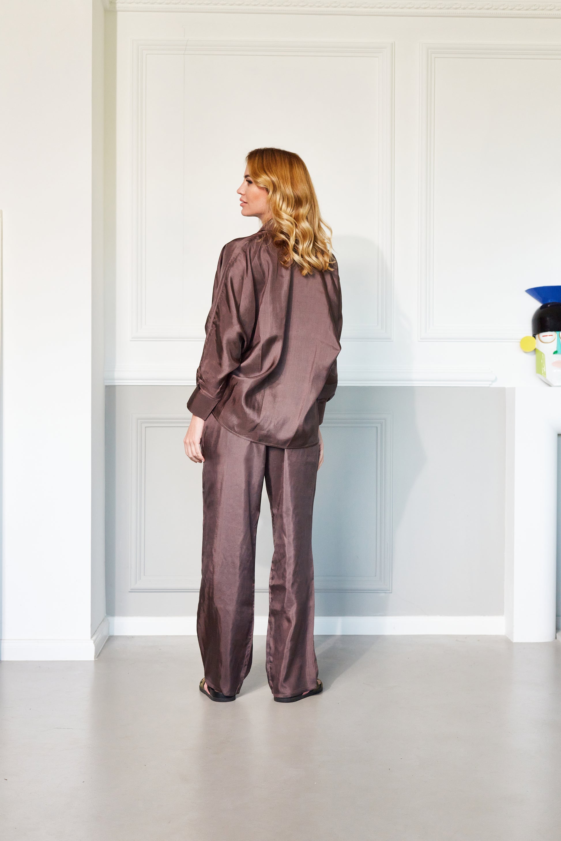 OLIVIA SHIRT AND LONG PANTS SET IN BORDEAUX
