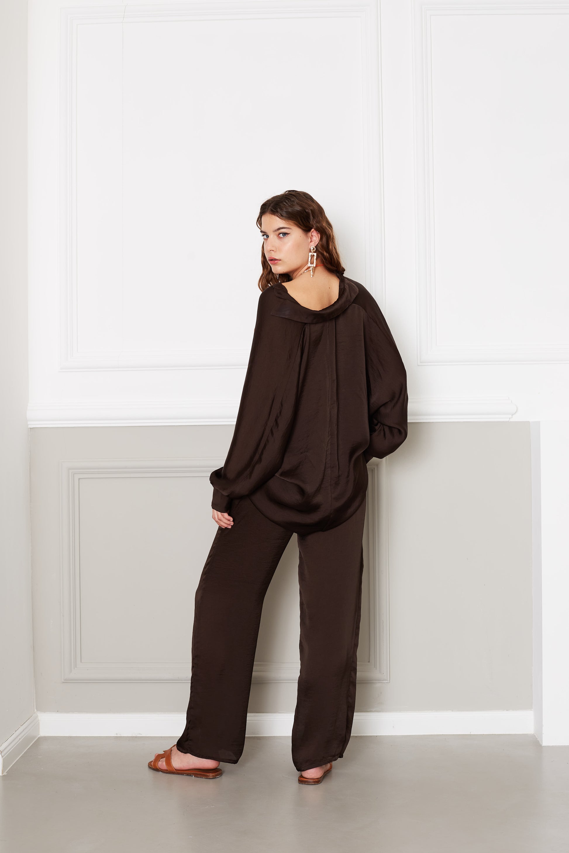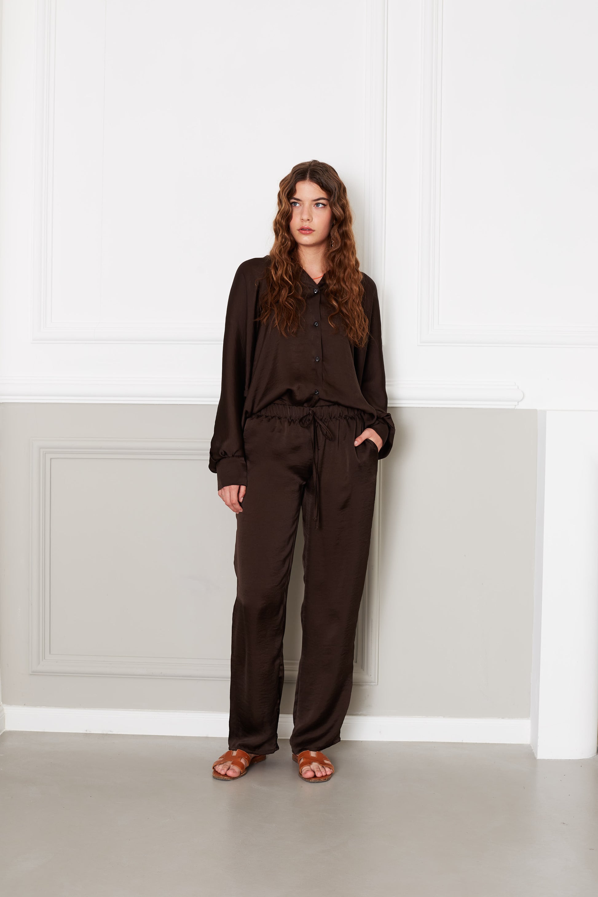 OLIVIA SHIRT AND PANTS IN CHOCOLATE BROWN